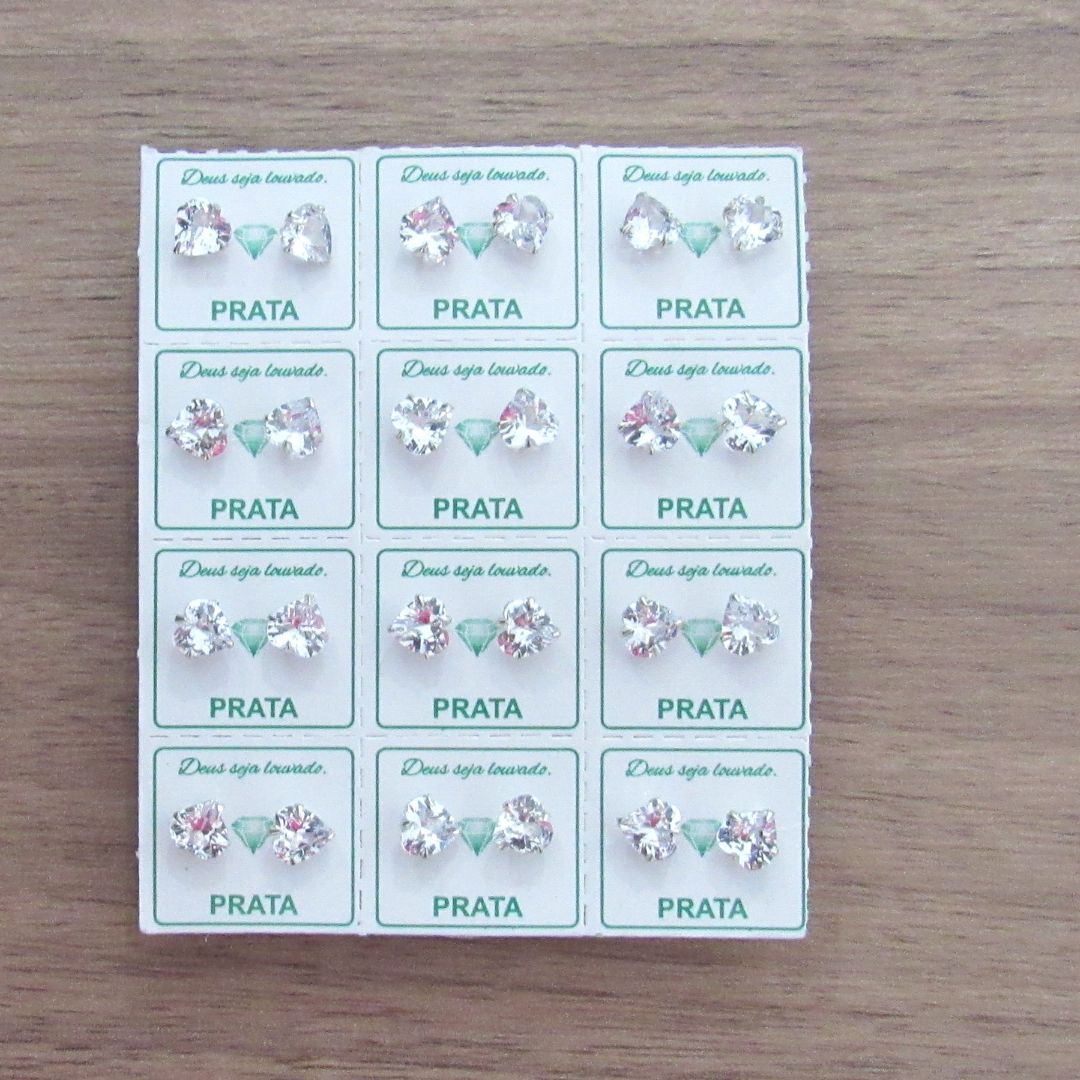 KIT 12 BRINCOS DE PRATA ZIRCÔNIA CORAÇÃO 6MM