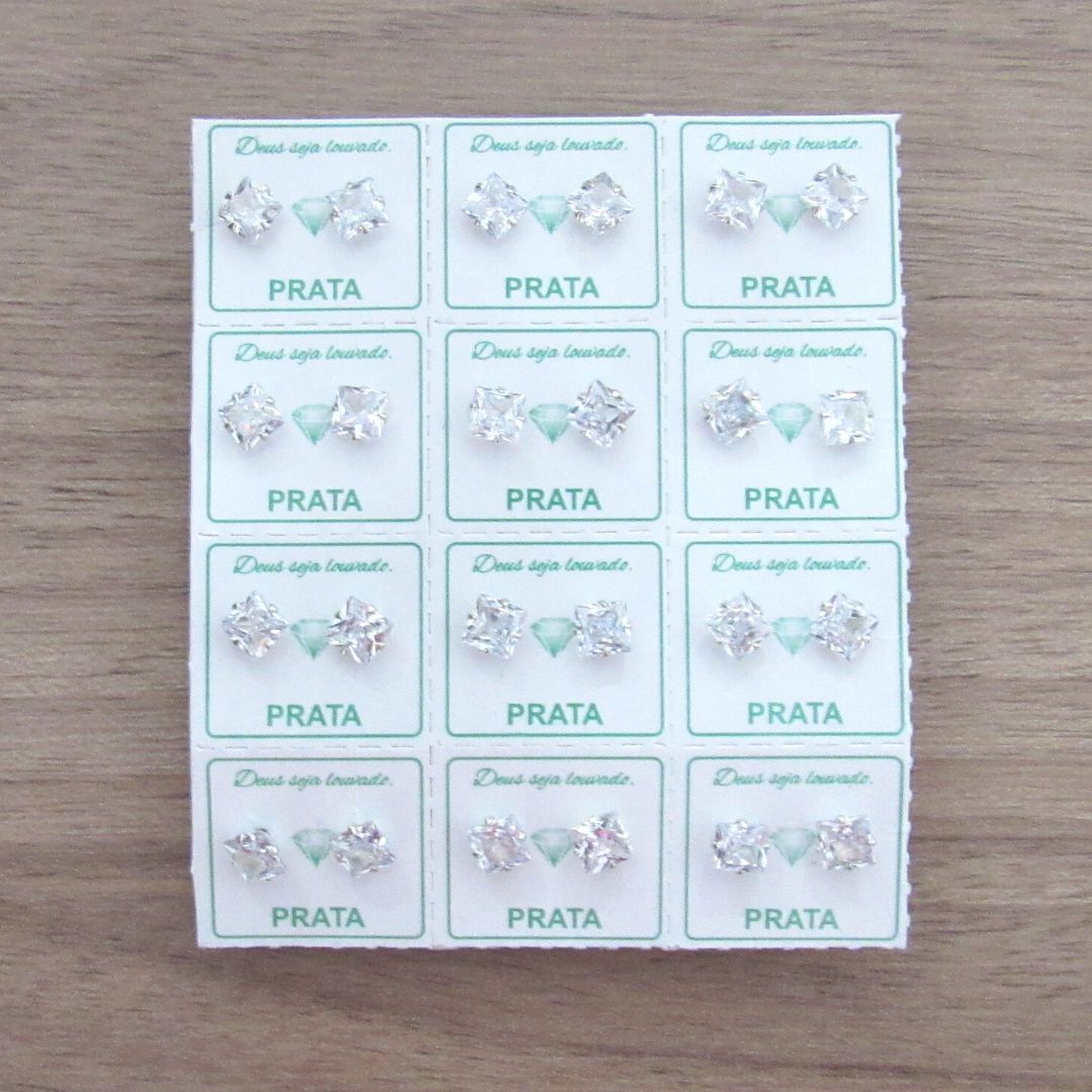 KIT 12 BRINCOS DE PRATA ZIRCÔNIA QUADRADA 5MM