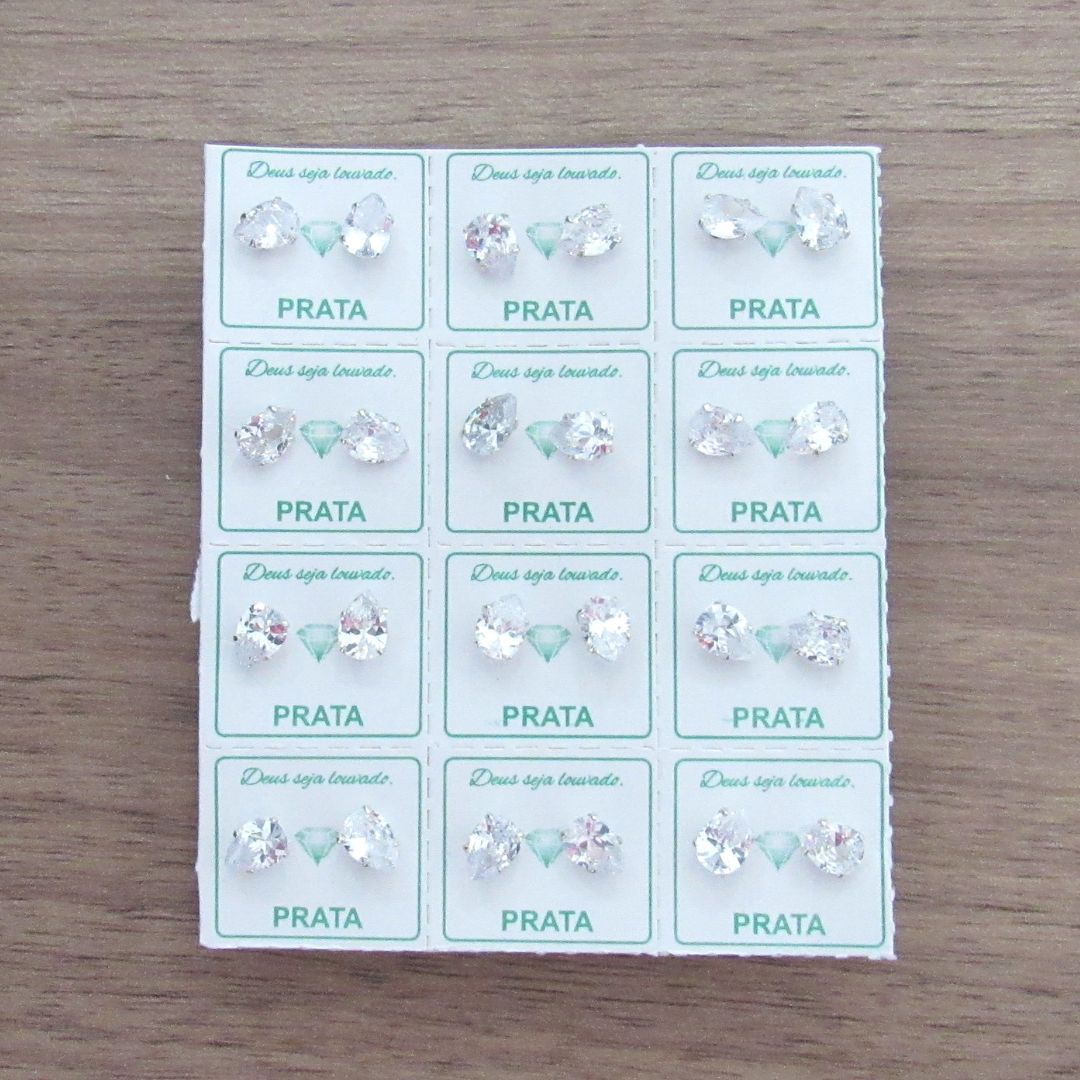 KIT COM 12 BRINCOS DE PRATA ZIRCONIA GOTA 5X7