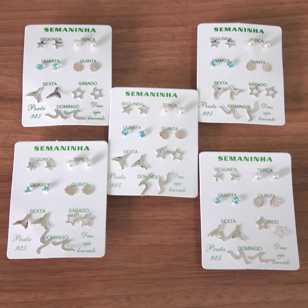 KIT COM 5 SEMANINHA BRINCOS DE PRATA N 8