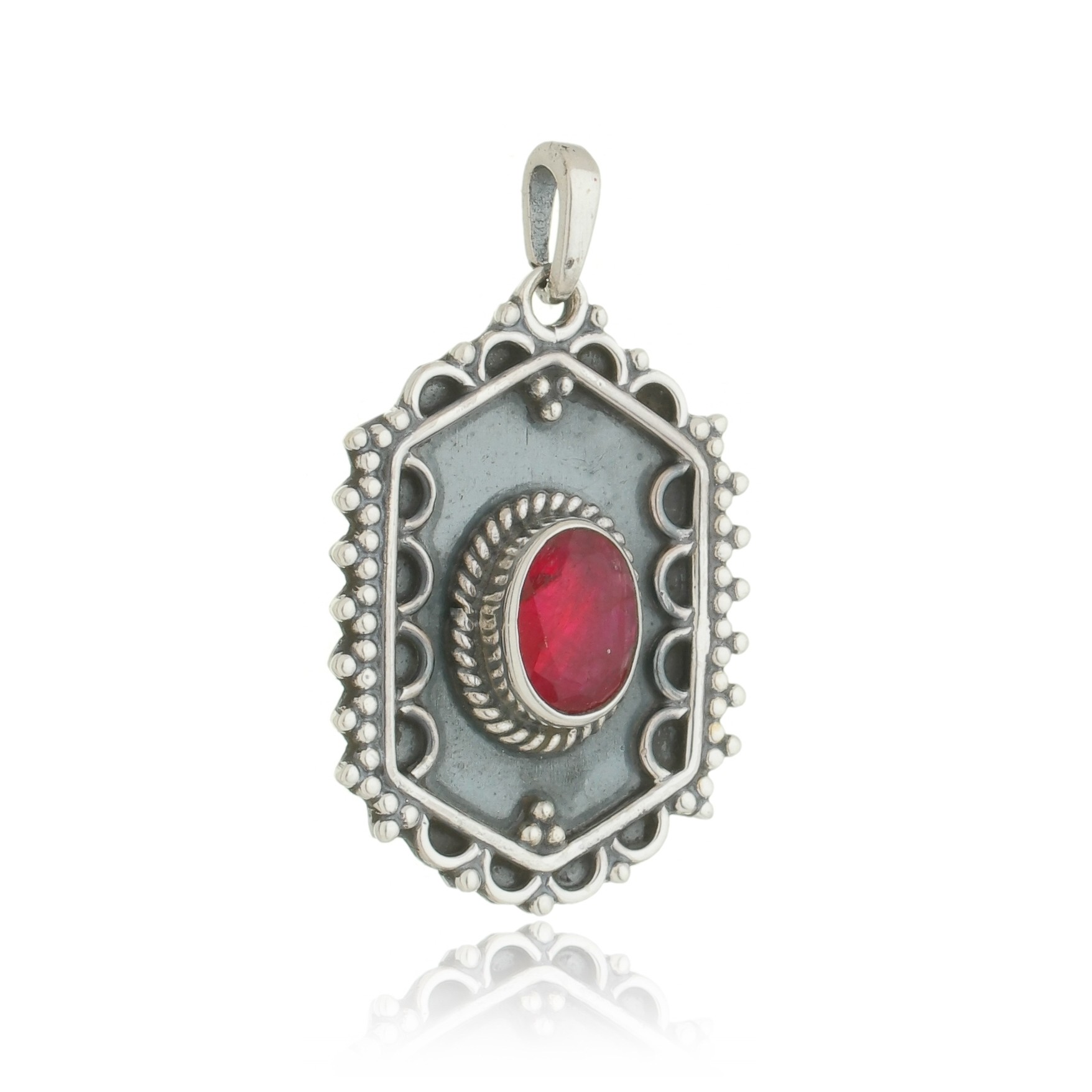 PINGENTE DE PRATA BALI COM PEDRA RUBI