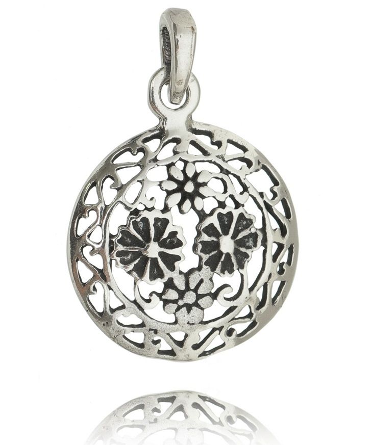 PINGENTE DE PRATA MANDALA FLORAL