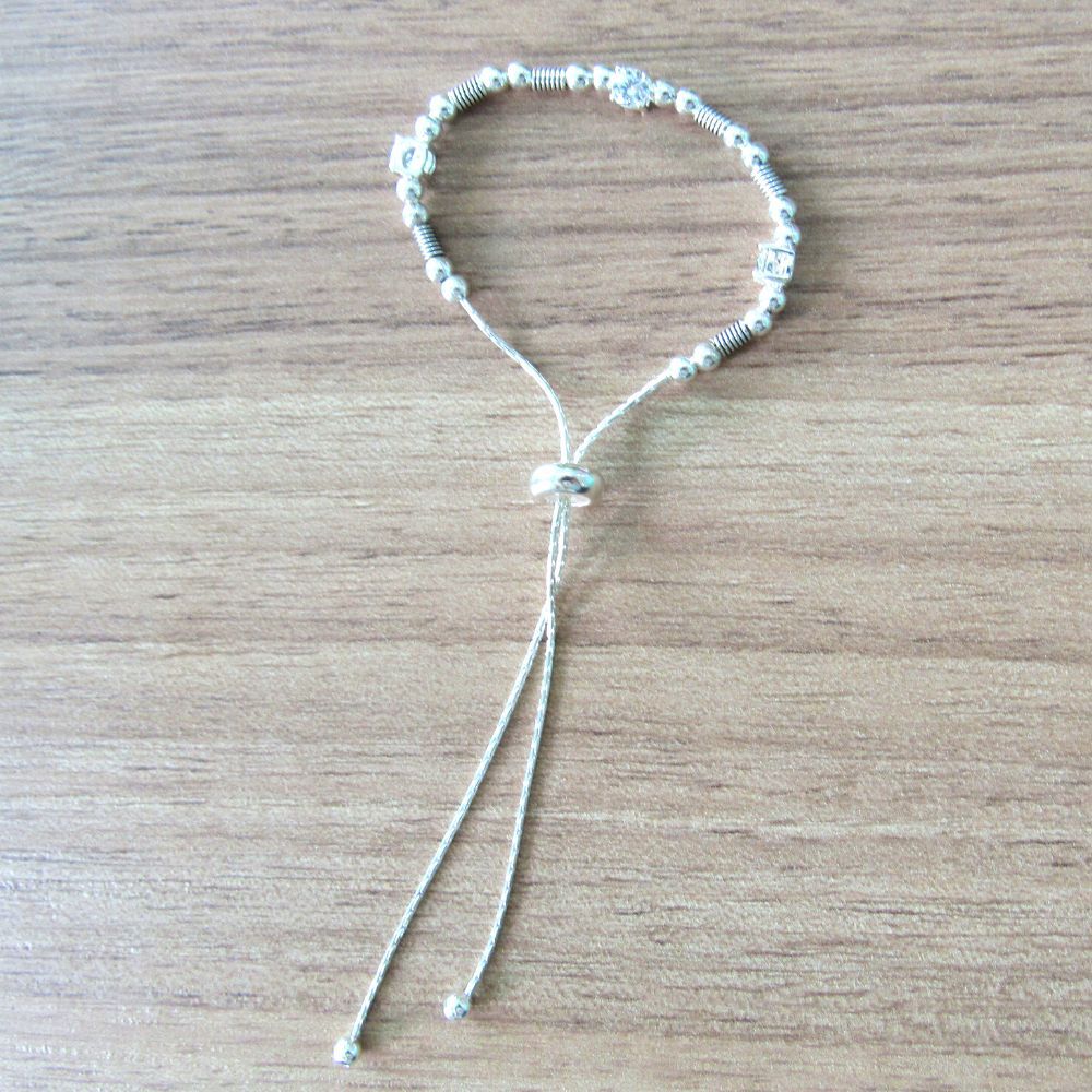 PULSEIRA DE PRATA AJUSTÁVEL BOLINHA E CRISTAL