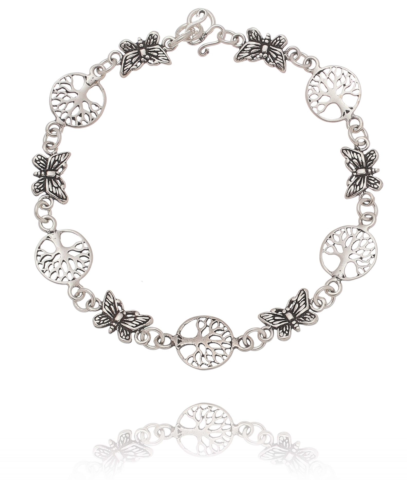 PULSEIRA DE PRATA BALI ÁRVORE DA VIDA E BORBOLETAS