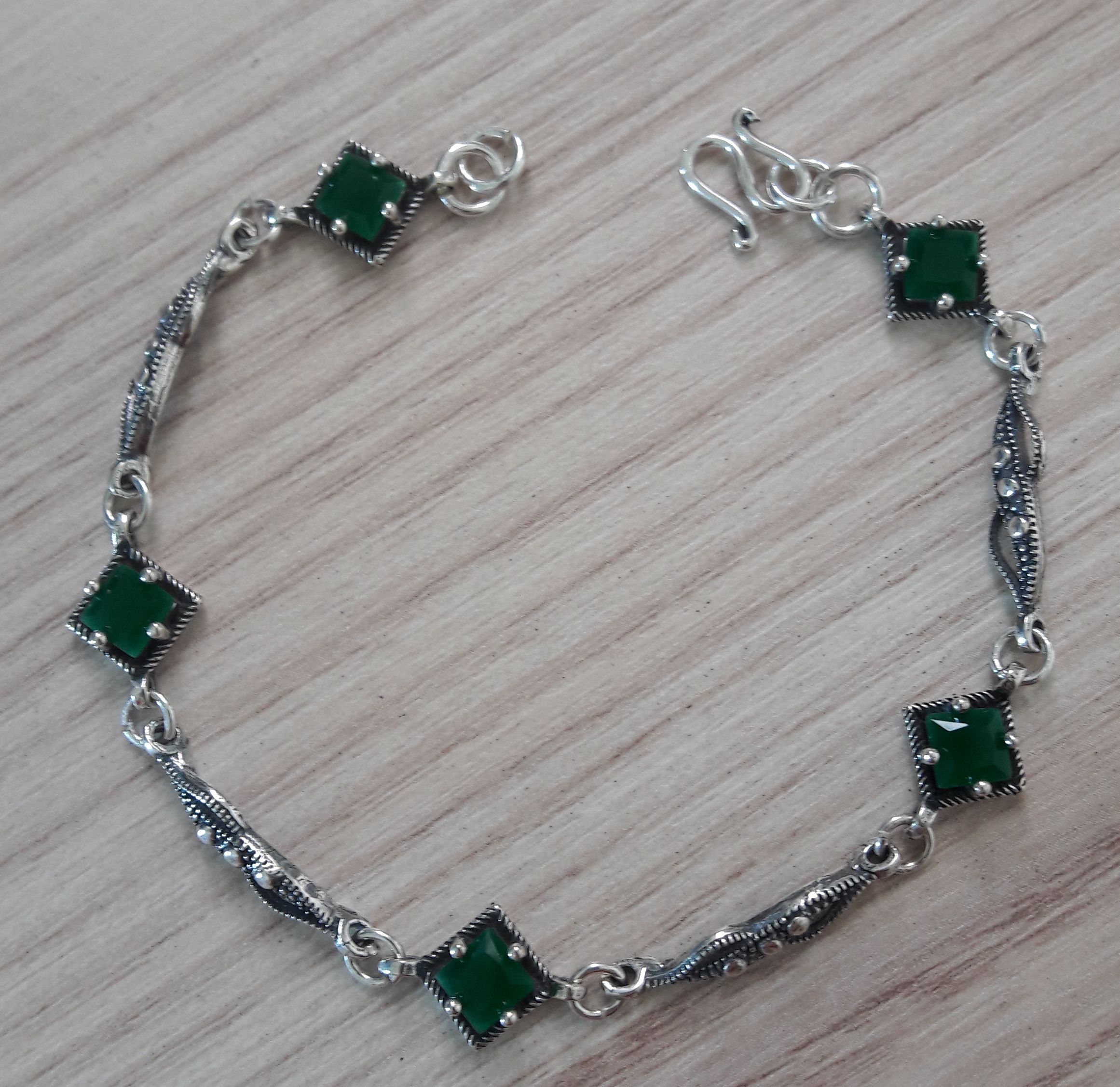 PULSEIRA DE PRATA BLOSSOM VERDE ESMERALDA