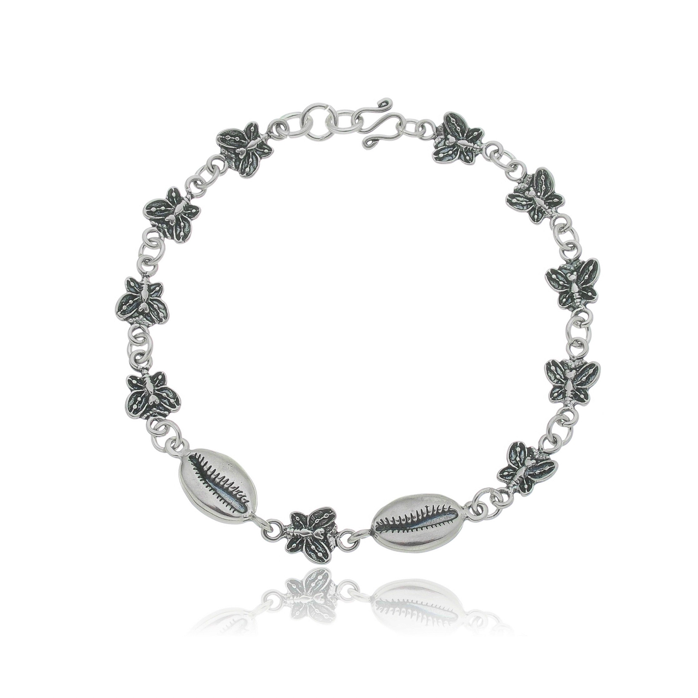 PULSEIRA DE PRATA BALI BORBOLETINHAS E BUZIOS