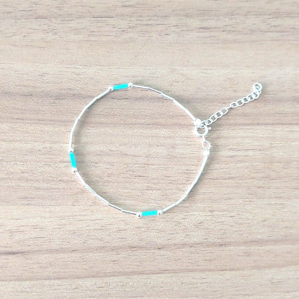 PULSEIRA DE PRATA CANUTILHOS E BOLINHA AZUL