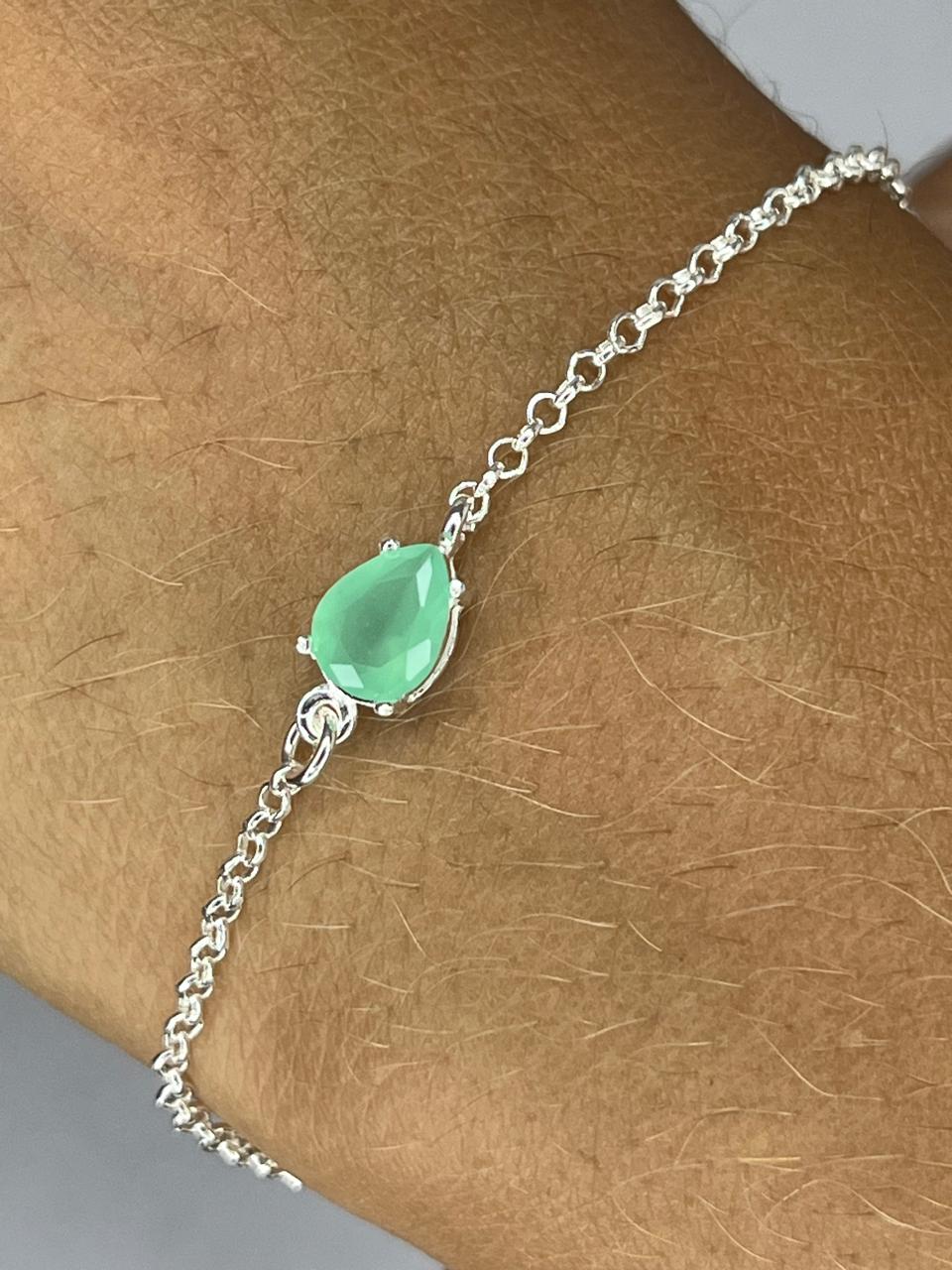 Adicione um toque de elegância à sua coleção com nossa pulseira de prata, apresentando uma deslumbrante pedra em zircônia verde água.