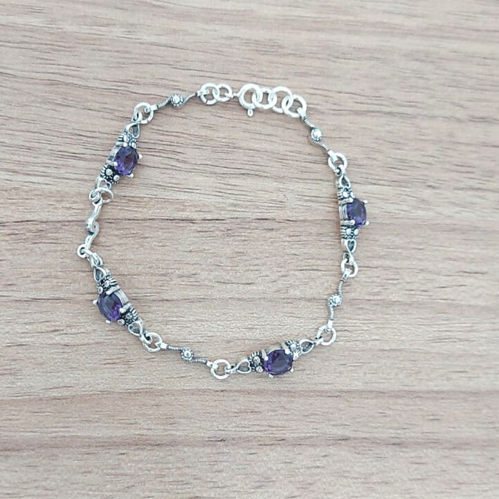 PULSEIRA DE PRATA COM ZIRCÔNIA AMETISTA
