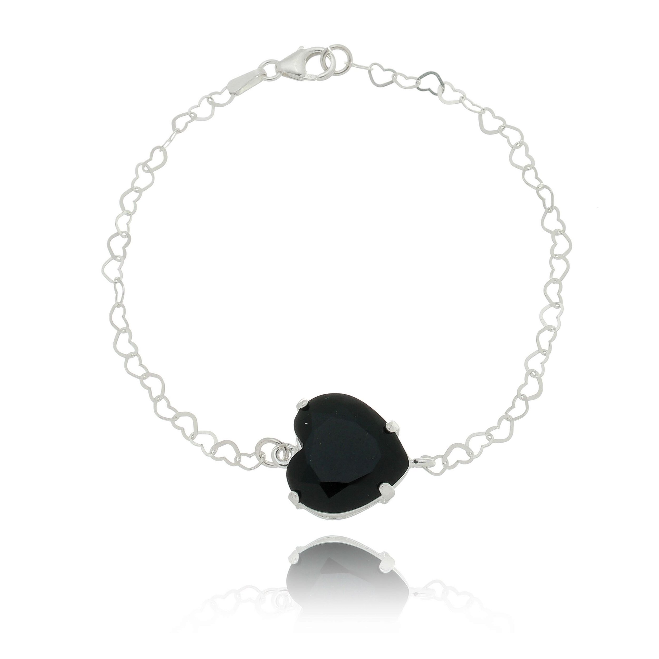 PULSEIRA DE PRATA CORAÇÃO NEGRO
