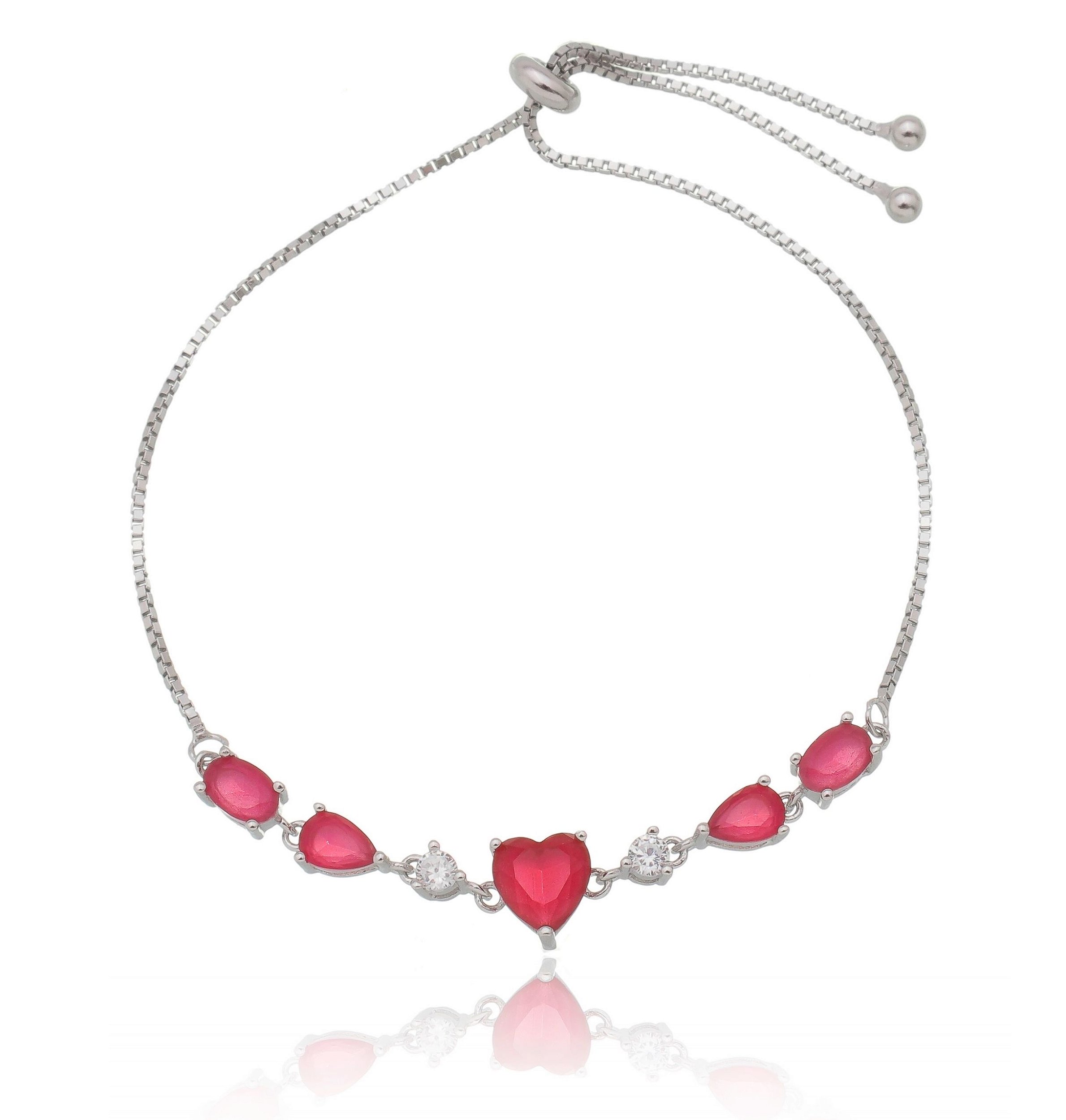 PULSEIRA DE PRATA CORAÇÃO RUBI AJUSTÁVEL