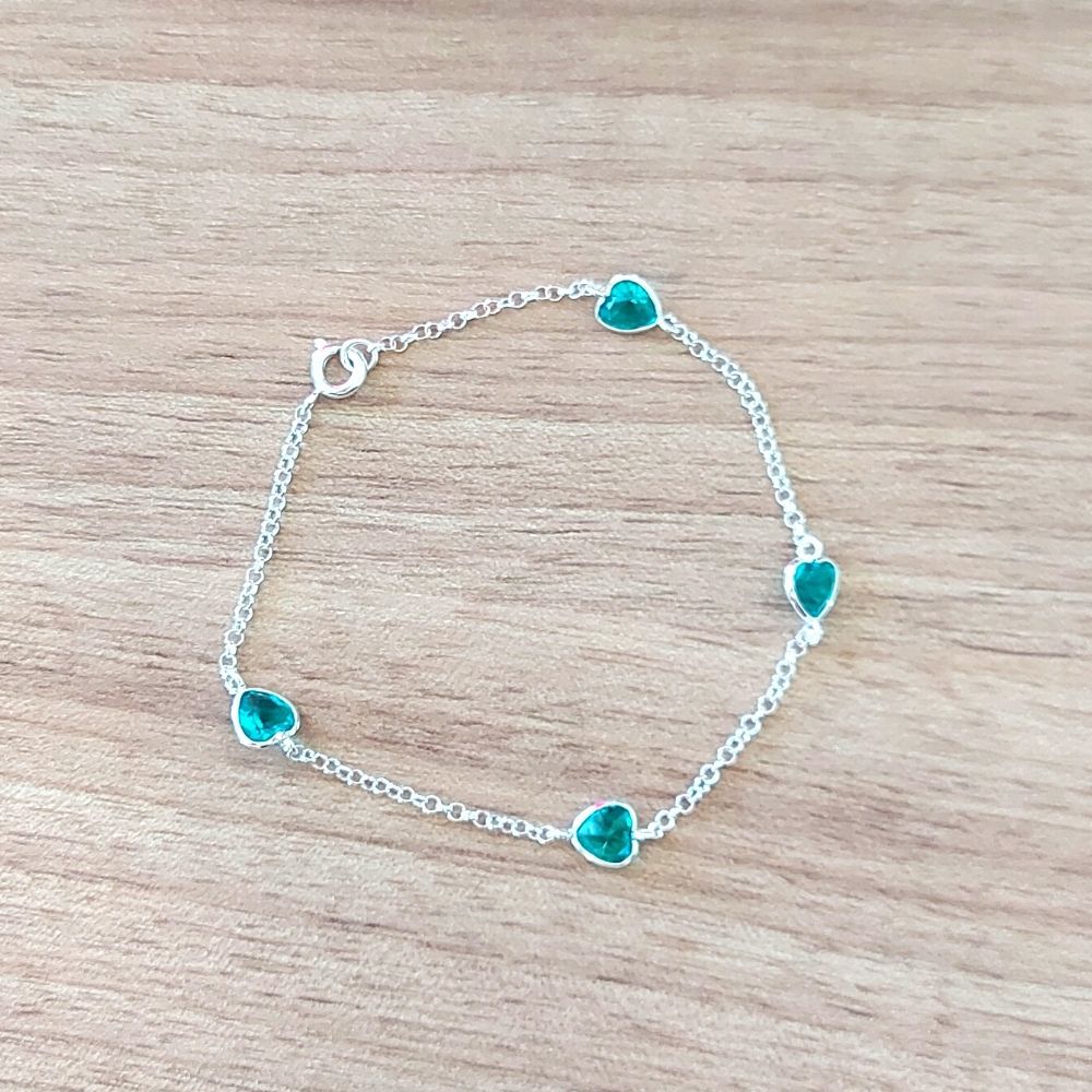 PULSEIRA DE PRATA CORAÇÃO TURMALINA