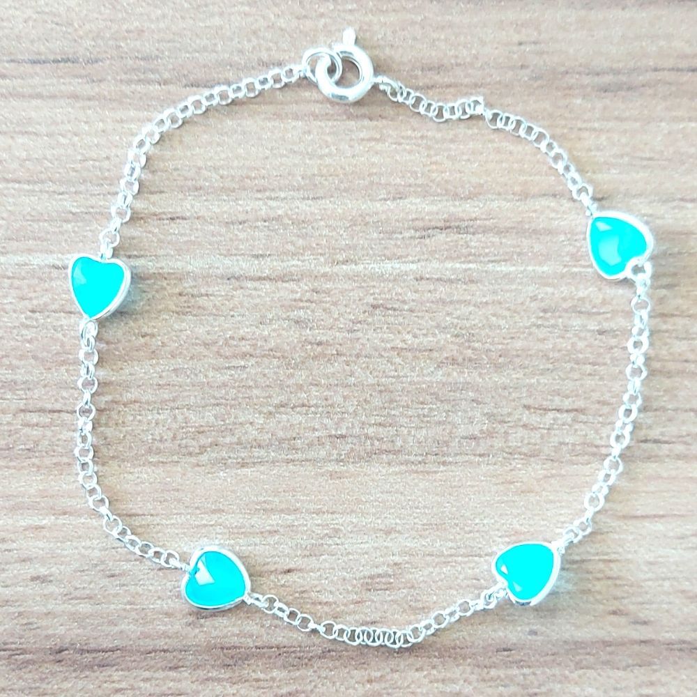 PULSEIRA DE PRATA CORAÇÃO VERDE LEITOSO