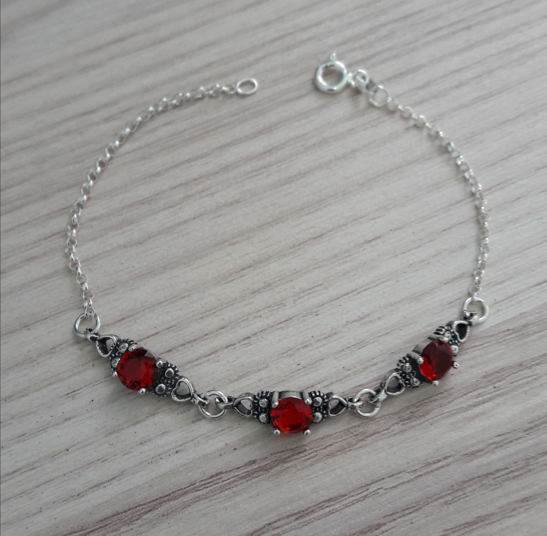 PULSEIRA DE PRATA CORAÇÃO VERMELHO PASSION