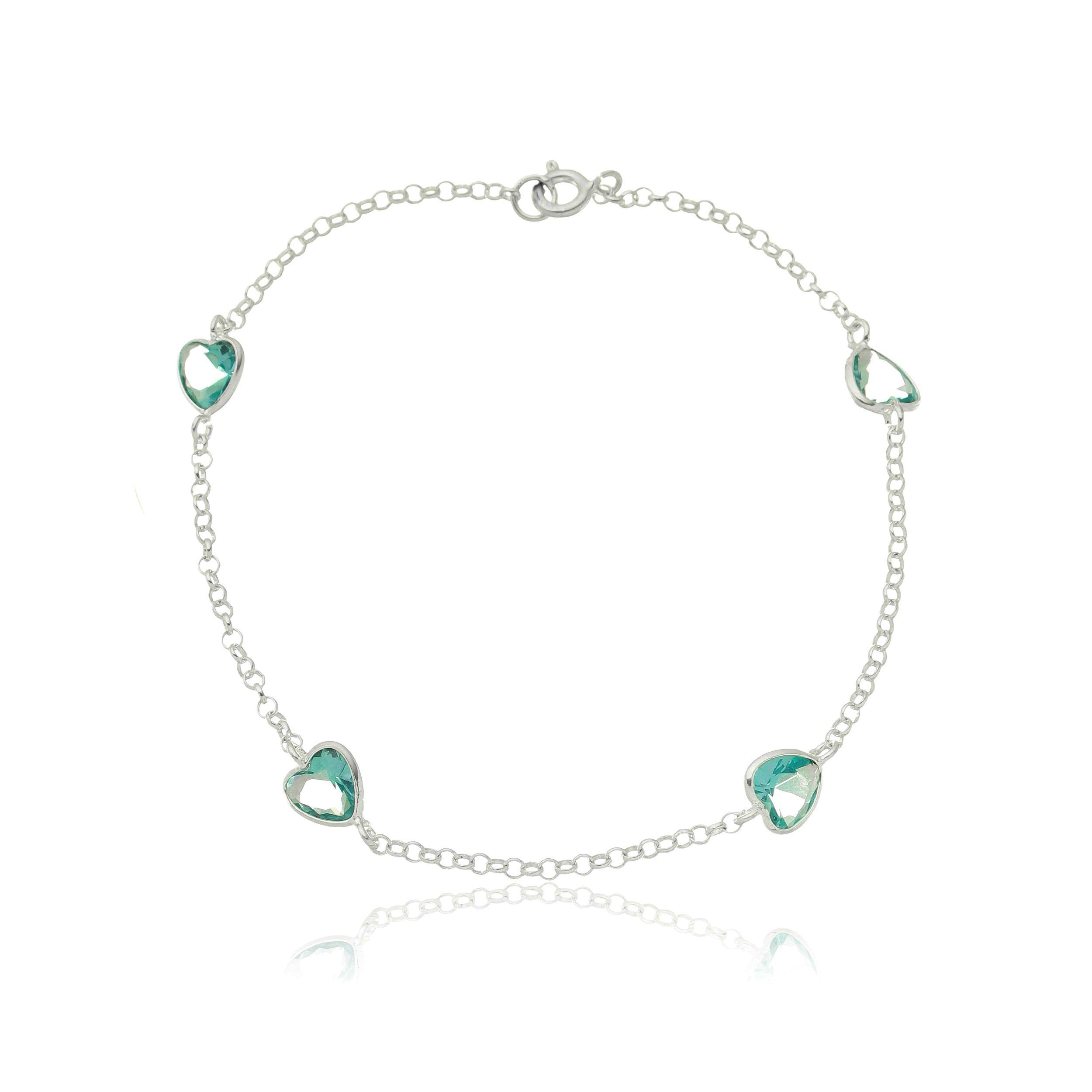 PULSEIRA DE PRATA ELOS CORAÇÕES AZUL