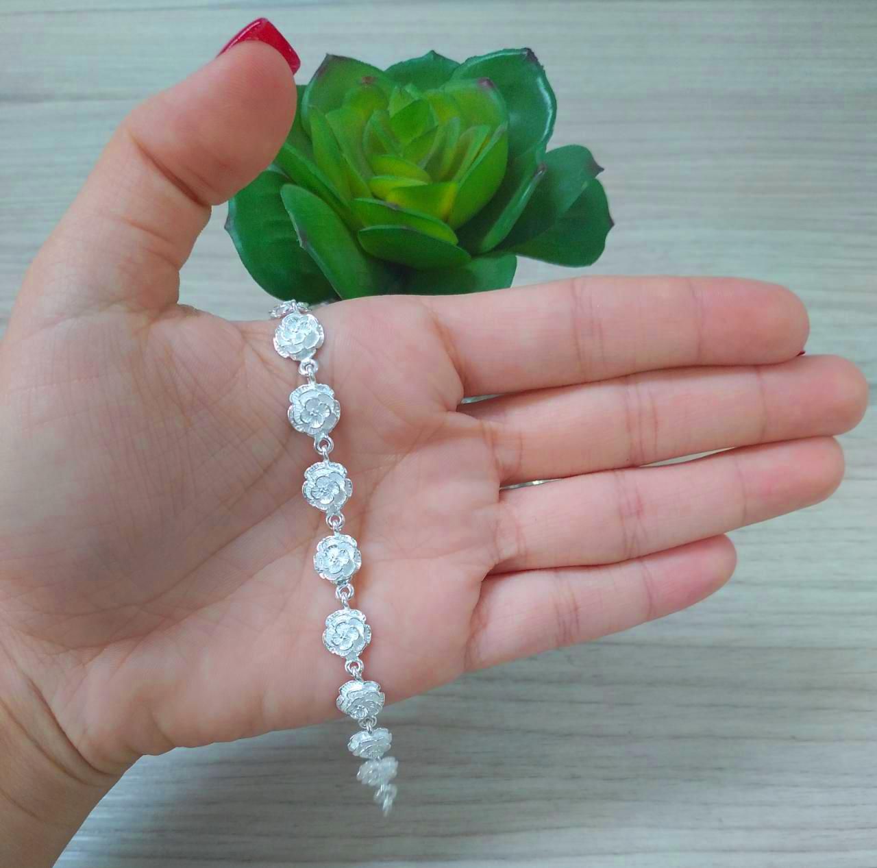 PULSEIRA DE PRATA FLOR COM PÓLEN