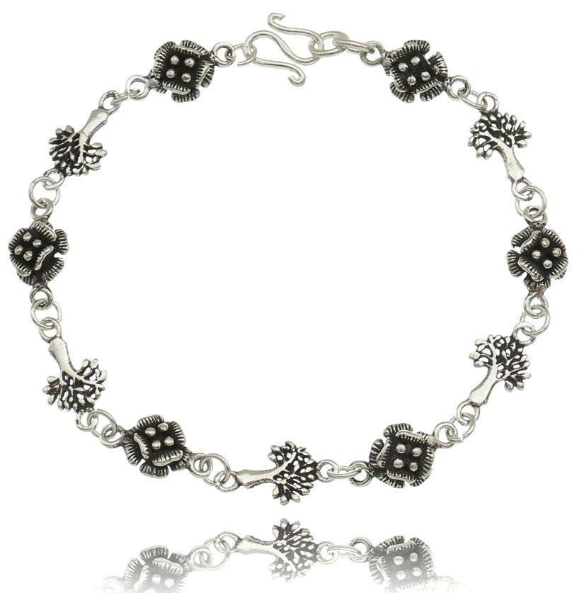 PULSEIRA DE PRATA FLOR E ÁRVORE DA VIDA
