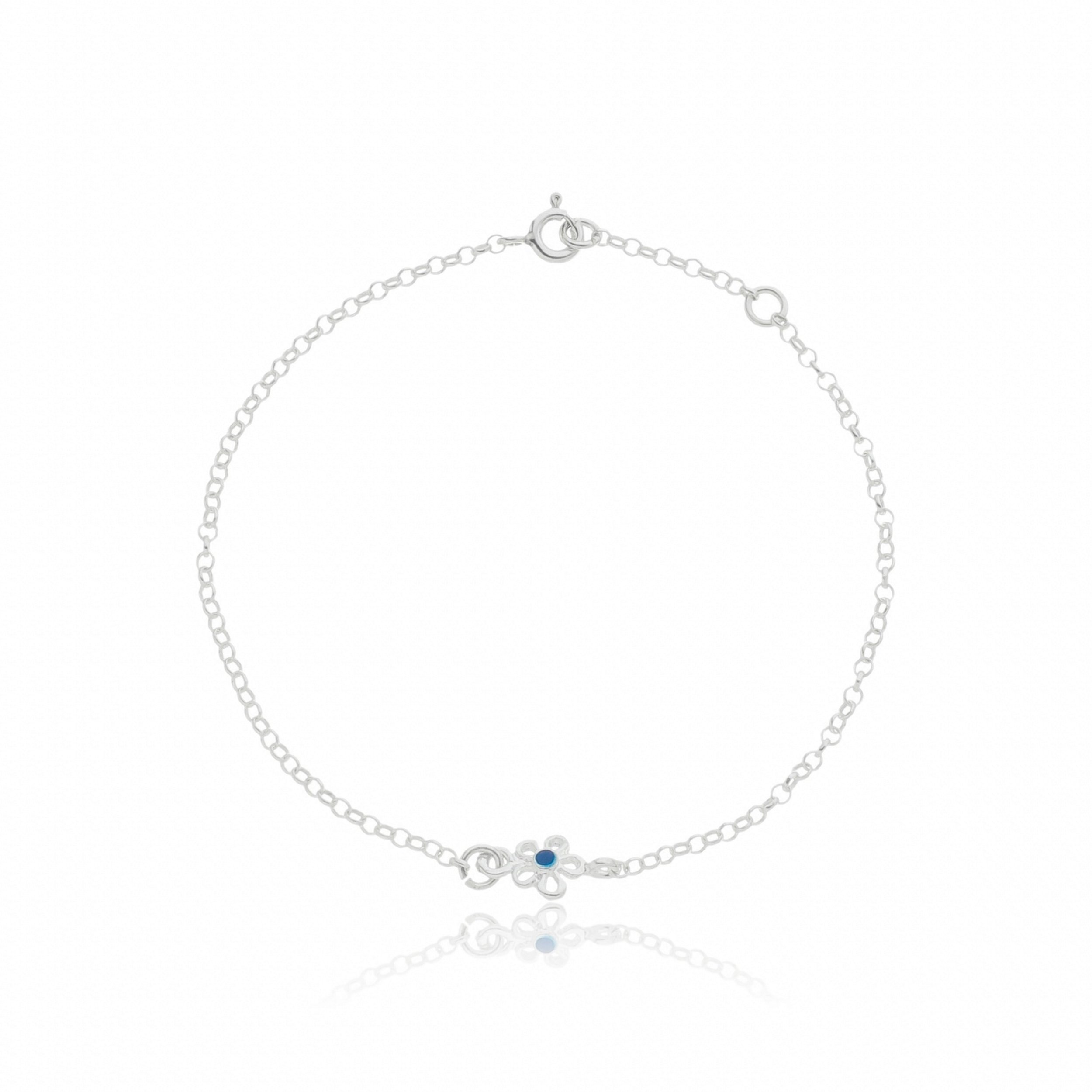 PULSEIRA DE PRATA FLORZINHA AZUL
