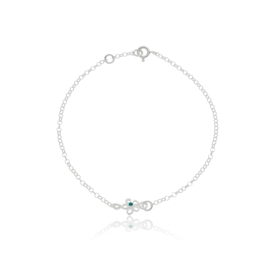 PULSEIRA DE PRATA FLORZINHA VERDE