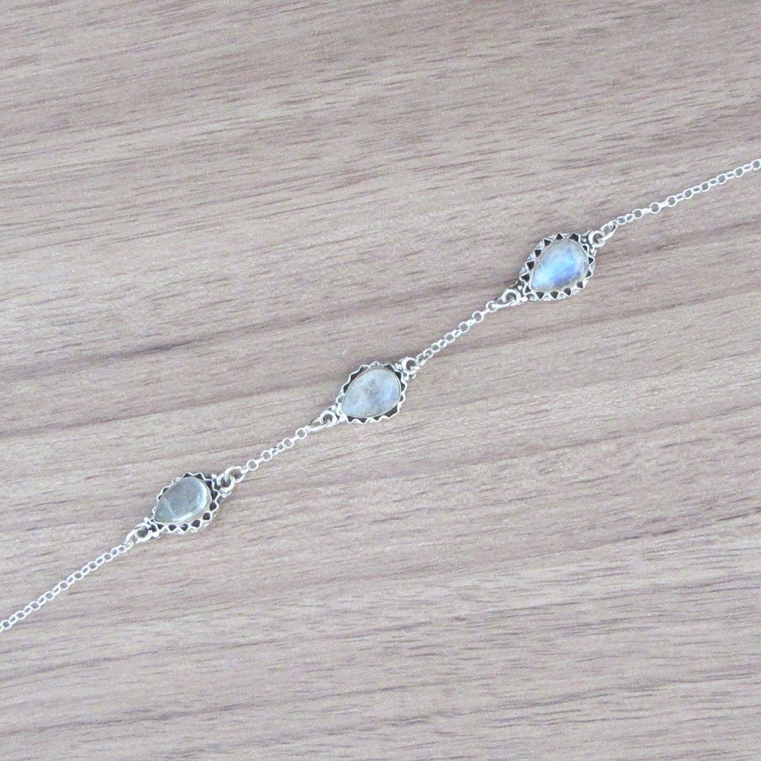 PULSEIRA DE PRATA GOTAS TRABALHADAS PEDRA DA LUA
