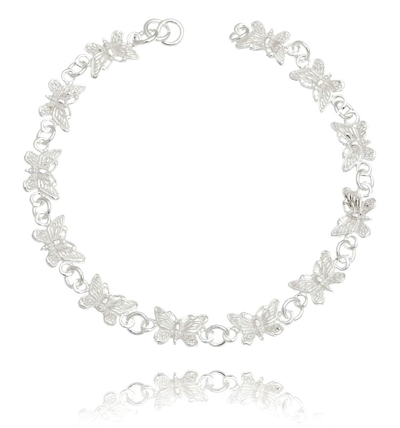 PULSEIRA DE PRATA LISA BORBOLETAS LADO