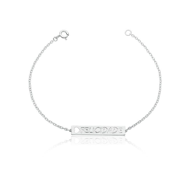 PULSEIRA DE PRATA PLACA FELICIDADE