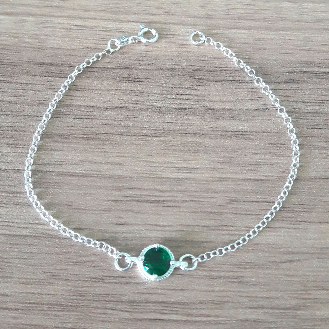 PULSEIRA DE PRATA PONTO DE LUZ VERDE ESMERALDA