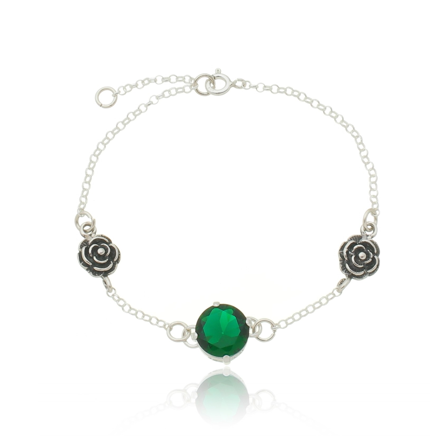 PULSEIRA COM ROSINHAS E ZIRCÔNIA VERDE