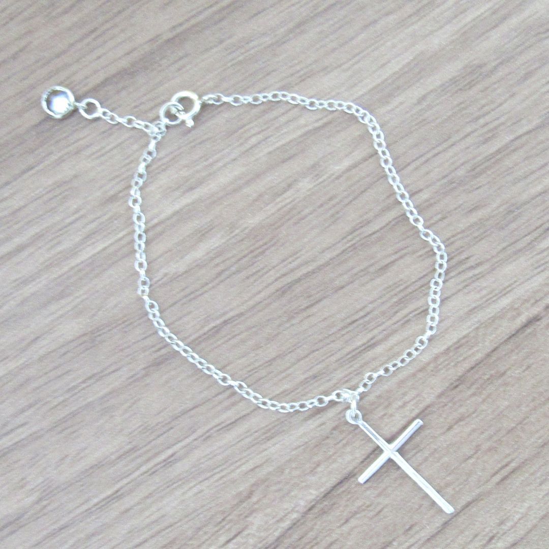 PULSEIRA DE PRATA CRUZ COM PONTO DE LUZ