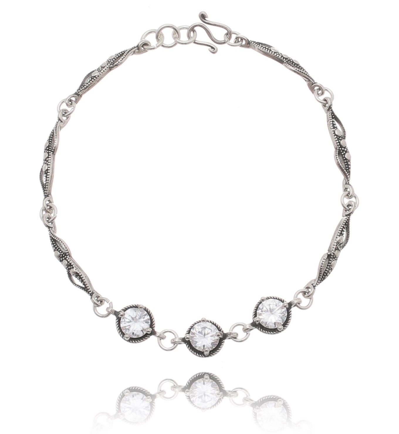 PULSEIRA PRATA DE BALI CZ CRISTAL ROUND CENTRAL