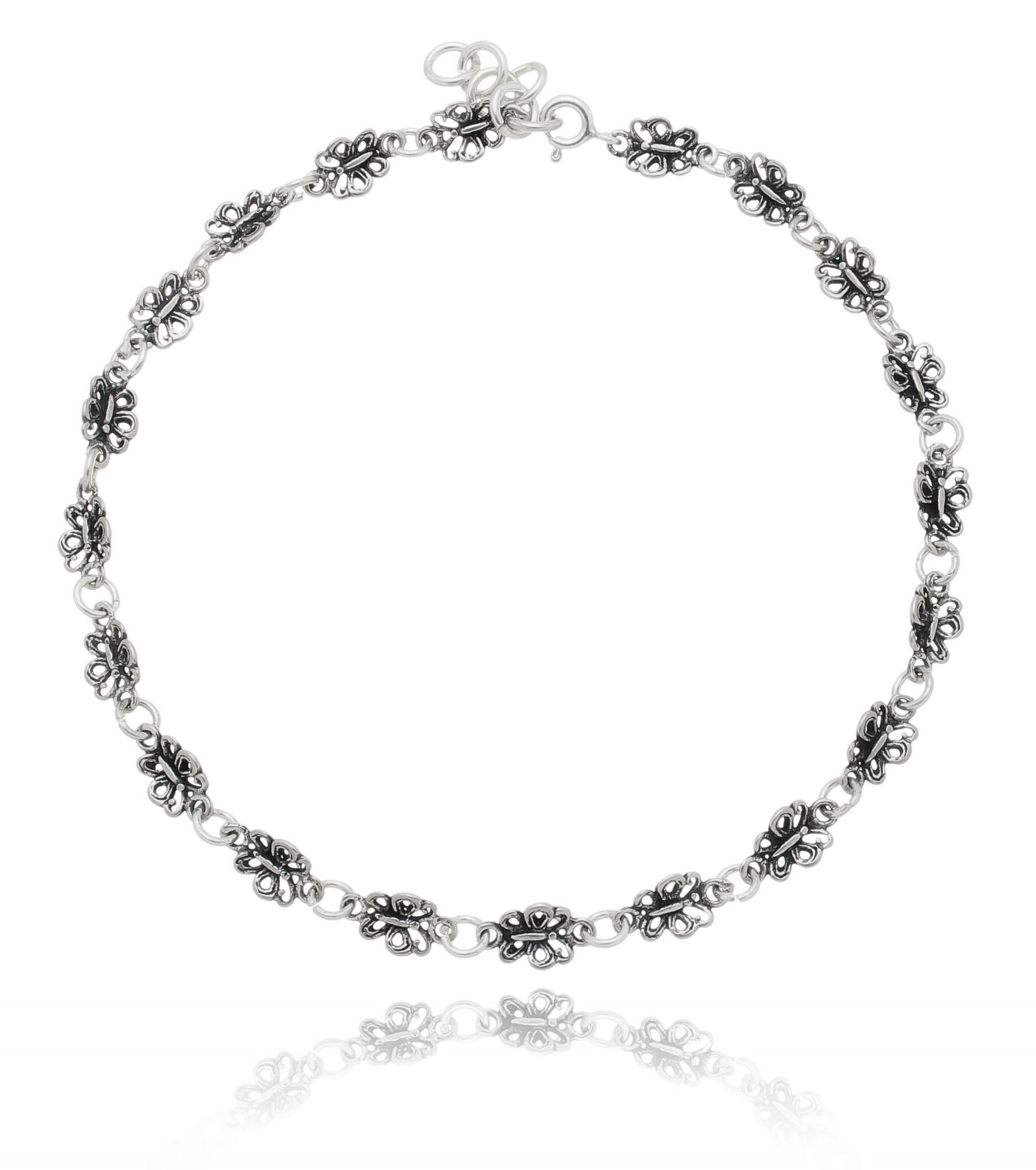 TORNOZELEIRA DE PRATA BORBOLETINHAS VAZADAS