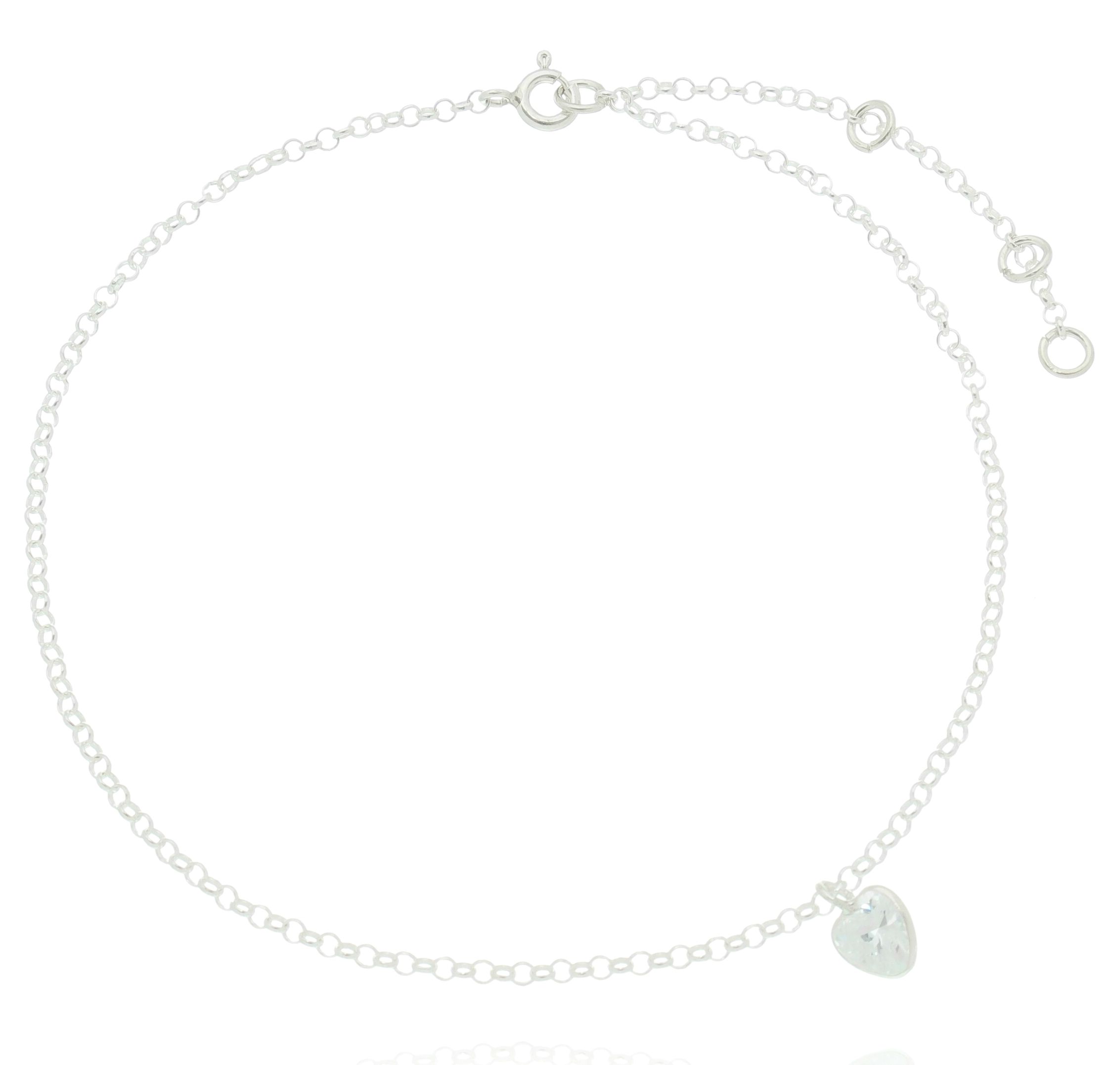 TORNOZELEIRA DE PRATA CORAÇÃO ZIRCÔNIA