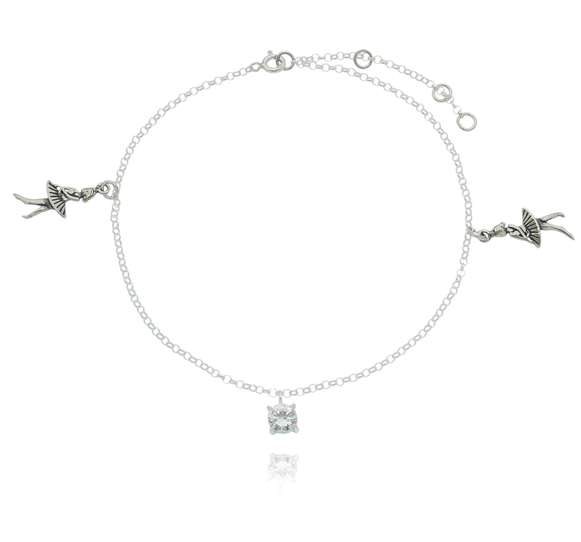 TORNOZELEIRA DE PRATA PONTO DE LUZ COM BAILARINAS