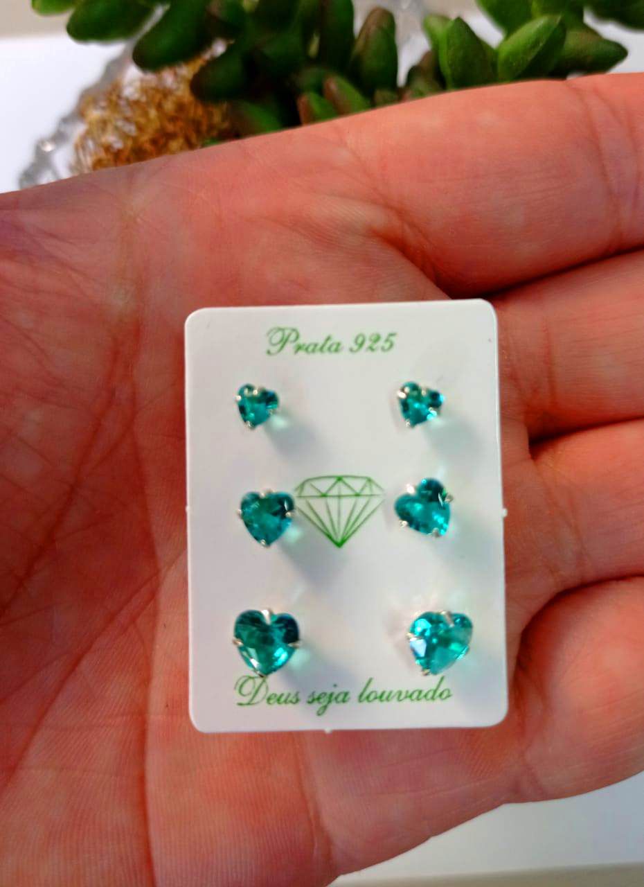 TRIO DE BRINCOS CORAÇÃO ROSA