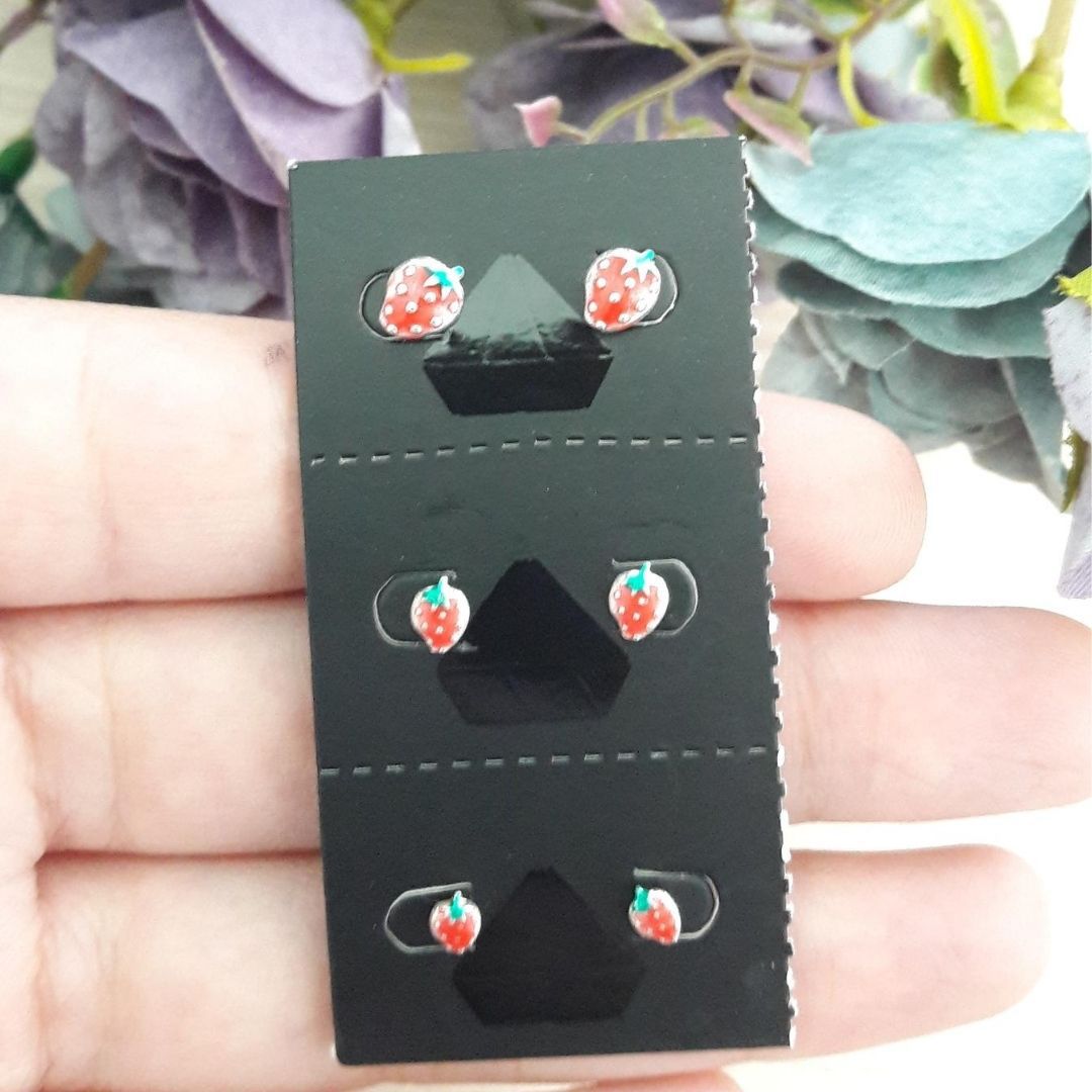 TRIO DE BRINCOS DE PRATA MORANGO