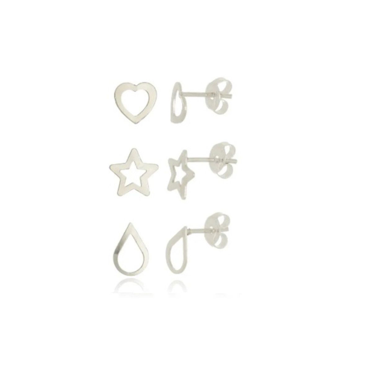 TRIO DE PRATA CORAÇÃO, ESTRELA E GOTA